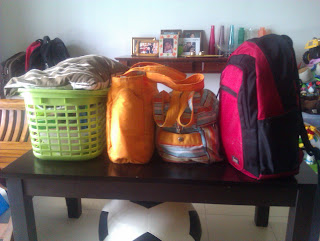 Ini rutin aku setiap petang jumaat, packing-packing barang nak balik ke rumah mertua di batu pahat..Ni baru sebahagian beg..Ada lagi beg yang tak masuk lagi ni, tu belum masuk lagi platik beg baju kotor lagi..huhu..